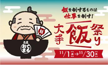 11月1日(水)~11月30日(木)までの1か月間、大手町の対象店舗をご利用いただくことで素敵な景品が当たる抽選会に参加できる「大手飯祭り」を開催します!! 1,000円(税込)以上のご利用1会計ごとにスタンプ1つをゲット!スタンプを5つ集めて11月29日(水)・30日(木)の抽選会に参加できます!美味しい大手町の飯を食べつくしてください!